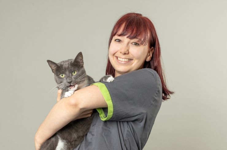 Nicole Jankowiak ist 2019 mit ihrem Freund von Villingen-Schwenningen in den Kanton Schaffhausen gezogen. Mit im Gepäck war natürlich auch ihr freundlicher und verspielter Kater Munin. Seit Dezember 2023 ist Nicole nun Teil unseres Teams. Sie kümmert sich am liebsten um das Wohl unserer stationären Patienten und verteilt auch viele Streicheleinheiten an die ihr anvertrauten Schützlinge. Eine weitere Vorliebe von ihr ist das Mitwirken bei Zahnbehandlungen, eigentlich macht sie aber alle Arbeiten gerne und TPA ist für Nicole immer noch ein Traumberuf. In der Freizeit wird Kater Munin verwöhnt. Er fordert Nicole jeweils frühmorgens pünktlich wie ein Wecker zum Spielen auf und anschliessend darf gerne gleich das Futter serviert werden. Nicole mag es zudem, mit ihrem Partner spazieren und schwimmen zu gehen. Auch die Pferde haben es ihr angetan und deshalb kann es gut vorkommen, dass man Nicole beim Ausreiten oder beim Arbeiten mit Pferden vom Boden aus (Horsemanship) antreffen kann.